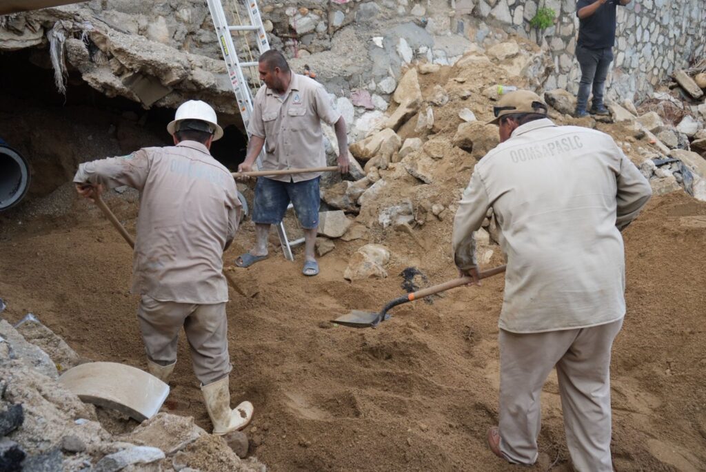 San Jose del Cabo, B.C.S.- El Organismo Operador Municipal del Sistema de Agua Potable, Alcantarillado y Saneamiento de Los Cabos informa que, derivado de las lluvias ocasionadas por el huracán Lorena, se registró un deslave en la carretera Transpeninsular, a la altura de la colonia Zacatal entre Chedraui y Autozone, lo que ocasionó que una fuerte corriente de agua arrastrara escombros y basura hasta impactar el acueducto número 1, generando una fisura en la infraestructura hidráulica.